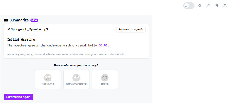 Schritt 3. Nachdem du die Datei transkribiert hast, gehe in den oberen Bereich der Oberfläche und klicke auf das Download-Symbol, um das Endergebnis zu speichern.