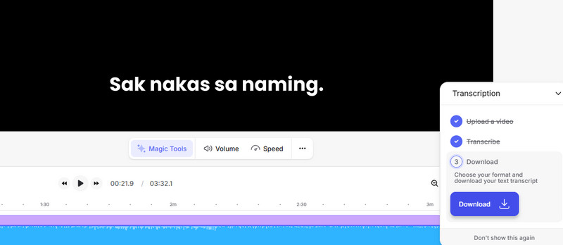Schritt 3. Wenn der Vorgang abgeschlossen ist, klicke auf Download, um die transkribierte Datei zu erhalten.